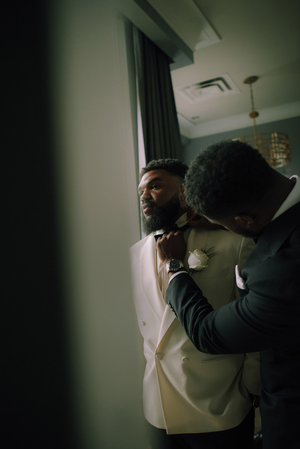 Some wedding days feel like a vibrant celebration of love, and this rainy-day extravaganza at Arlington Estate in Vaughan was just that. With every detail thoughtfully orchestrated by the exceptional talents of Lover’s Rock and an atmosphere bursting with energy, it was the perfect setting for capturing moments that radiated joy and style. The couple arrived at Arlington Estate, effortlessly chic, as if they had just stepped off the pages of a fashion magazine. Their attire was a stunning reflection of their unique personalities, combining elegance and flair in a way that felt entirely their own. Despite the rain, their radiant smiles and warm interactions set the tone for a day filled with laughter and love, proving that even the weather couldn’t dampen the spirit of their celebration.